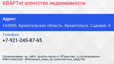 КВАРТet, агентство недвижимости по адресу 163000, Архангельская область, Архангельск, Садовая, 4 в дальнейшем Организация, размещена в следующих категориях: