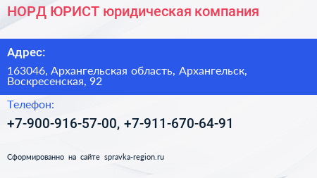 НОРД-ЮРИСТ, юридическая компания по адресу 163046, Архангельская область, Архангельск, Воскресенская, 92 в дальнейшем Организация, размещена в следующих категориях: