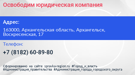 Освободим, юридическая компания по адресу 163000, Архангельская область, Архангельск, Воскресенская, 17 в дальнейшем Организация, размещена в следующих категориях: