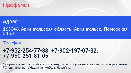 Профучет по адресу 163046, Архангельская область, Архангельск, Поморская, 34 к1 в дальнейшем Организация, размещена в следующих категориях:
