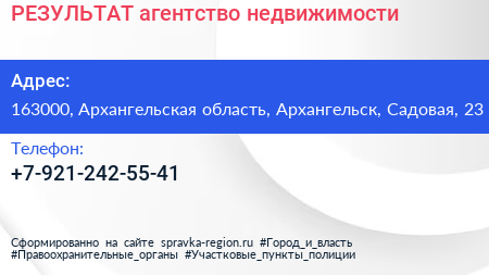 РЕЗУЛЬТАТ, агентство недвижимости по адресу 163000, Архангельская область, Архангельск, Садовая, 23 в дальнейшем Организация, размещена в следующих категориях: