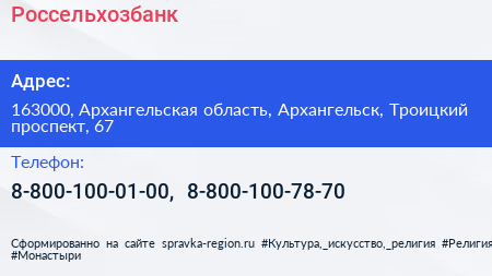 Россельхозбанк по адресу 163000, Архангельская область, Архангельск, Троицкий проспект, 67 в дальнейшем Организация, размещена в следующих категориях: