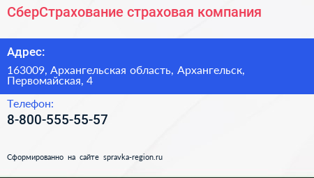 СберСтрахование, страховая компания по адресу 163009, Архангельская область, Архангельск, Первомайская, 4 в дальнейшем Организация, размещена в следующих категориях: