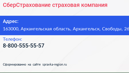 СберСтрахование, страховая компания по адресу 163000, Архангельская область, Архангельск, Свободы, 26 в дальнейшем Организация, размещена в следующих категориях: