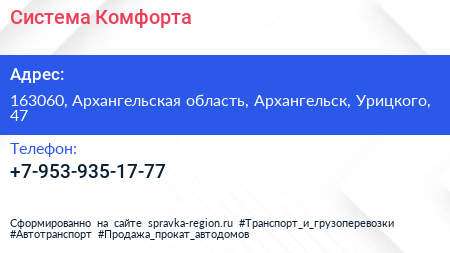 Система Комфорта по адресу 163060, Архангельская область, Архангельск, Урицкого, 47 в дальнейшем Организация, размещена в следующих категориях: