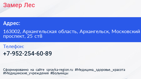 Замер-Лес по адресу 163002, Архангельская область, Архангельск, Московский проспект, 25 ст8 в дальнейшем Организация, размещена в следующих категориях: