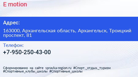 E.motion по адресу 163000, Архангельская область, Архангельск, Троицкий проспект, 81 в дальнейшем Организация, размещена в следующих категориях: