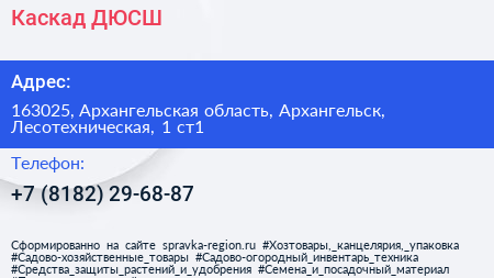 Каскад, ДЮСШ по адресу 163025, Архангельская область, Архангельск, Лесотехническая, 1 ст1 в дальнейшем Организация, размещена в следующих категориях: