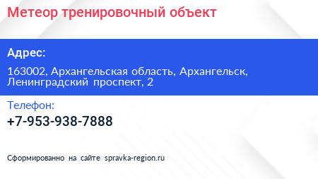 Метеор, тренировочный объект по адресу 163002, Архангельская область, Архангельск, Ленинградский проспект, 2 в дальнейшем Организация, размещена в следующих категориях: