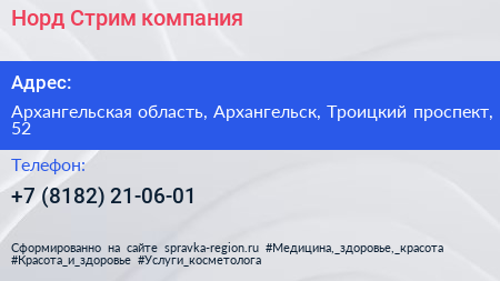 Норд Стрим, компания по адресу Архангельская область, Архангельск, Троицкий проспект, 52 в дальнейшем Организация, размещена в следующих категориях: