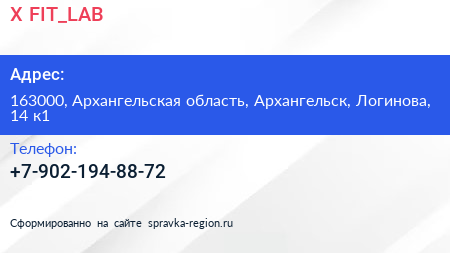 X-FIT_LAB по адресу 163000, Архангельская область, Архангельск, Логинова, 14 к1 в дальнейшем Организация, размещена в следующих категориях: