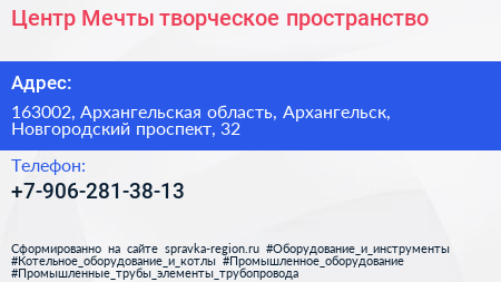 Центр Мечты, творческое пространство по адресу 163002, Архангельская область, Архангельск, Новгородский проспект, 32 в дальнейшем Организация, размещена в следующих категориях: