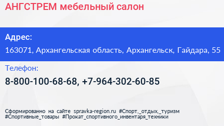 АНГСТРЕМ, мебельный салон по адресу 163071, Архангельская область, Архангельск, Гайдара, 55 в дальнейшем Организация, размещена в следующих категориях: