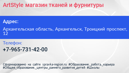 ArtStyle, магазин тканей и фурнитуры по адресу Архангельская область, Архангельск, Троицкий проспект, 12 в дальнейшем Организация, размещена в следующих категориях: