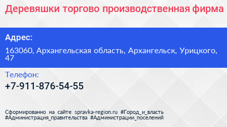 Деревяшки, торгово-производственная фирма по адресу 163060, Архангельская область, Архангельск, Урицкого, 47 в дальнейшем Организация, размещена в следующих категориях: