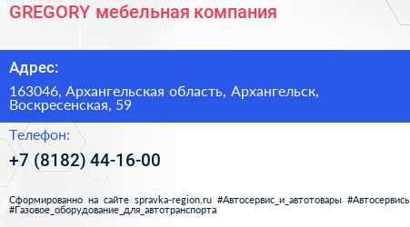 GREGORY, мебельная компания по адресу 163046, Архангельская область, Архангельск, Воскресенская, 59 в дальнейшем Организация, размещена в следующих категориях: