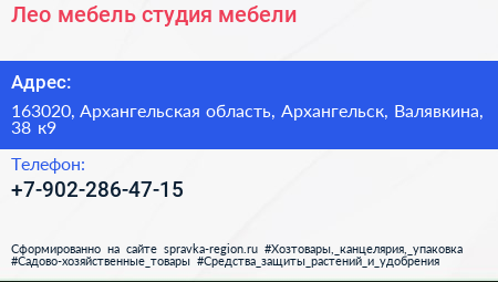 Лео мебель, студия мебели по адресу 163020, Архангельская область, Архангельск, Валявкина, 38 к9 в дальнейшем Организация, размещена в следующих категориях: