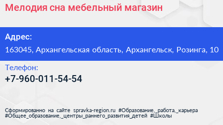 Мелодия сна, мебельный магазин по адресу 163045, Архангельская область, Архангельск, Розинга, 10 в дальнейшем Организация, размещена в следующих категориях: