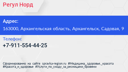 Регул Норд по адресу 163000, Архангельская область, Архангельск, Садовая, 9 в дальнейшем Организация, размещена в следующих категориях: