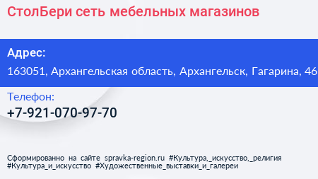 СтолБери, сеть мебельных магазинов по адресу 163051, Архангельская область, Архангельск, Гагарина, 46 в дальнейшем Организация, размещена в следующих категориях: