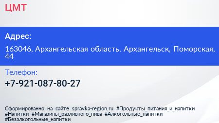 ЦМТ по адресу 163046, Архангельская область, Архангельск, Поморская, 44 в дальнейшем Организация, размещена в следующих категориях: