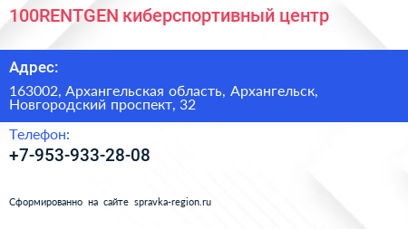 100RENTGEN, киберспортивный центр по адресу 163002, Архангельская область, Архангельск, Новгородский проспект, 32 в дальнейшем Организация, размещена в следующих категориях: