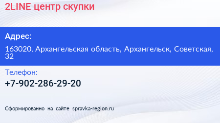 2LINE, центр скупки по адресу 163020, Архангельская область, Архангельск, Советская, 32 в дальнейшем Организация, размещена в следующих категориях: