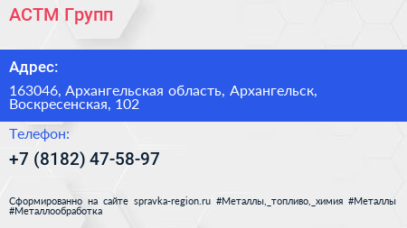 АСТМ-Групп по адресу 163046, Архангельская область, Архангельск, Воскресенская, 102 в дальнейшем Организация, размещена в следующих категориях: