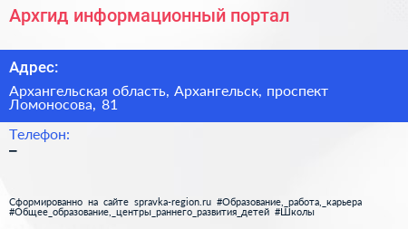 Архгид, информационный портал по адресу Архангельская область, Архангельск, проспект Ломоносова, 81 в дальнейшем Организация, размещена в следующих категориях: