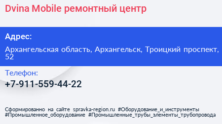 Dvina-Mobile, ремонтный центр по адресу Архангельская область, Архангельск, Троицкий проспект, 52 в дальнейшем Организация, размещена в следующих категориях: