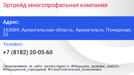 Эртрейд, многопрофильная компания по адресу 163069, Архангельская область, Архангельск, Поморская, 22 в дальнейшем Организация, размещена в следующих категориях: