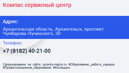 Компас, сервисный центр по адресу Архангельская область, Архангельск, проспект Чумбарова-Лучинского, 30 в дальнейшем Организация, размещена в следующих категориях: