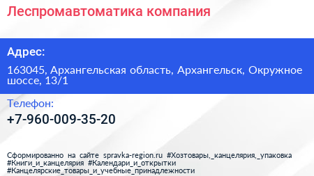 Леспромавтоматика, компания по адресу 163045, Архангельская область, Архангельск, Окружное шоссе, 13/1 в дальнейшем Организация, размещена в следующих категориях: