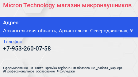 Micron Technology, магазин микронаушников по адресу Архангельская область, Архангельск, Северодвинская, 9 в дальнейшем Организация, размещена в следующих категориях: