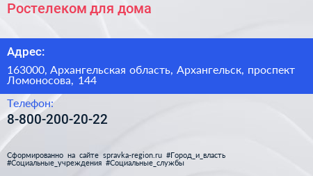 Ростелеком для дома по адресу 163000, Архангельская область, Архангельск, проспект Ломоносова, 144 в дальнейшем Организация, размещена в следующих категориях: