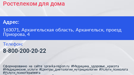 Ростелеком для дома по адресу 163071, Архангельская область, Архангельск, проезд Приорова, 4 в дальнейшем Организация, размещена в следующих категориях: