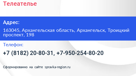 Телеателье по адресу 163045, Архангельская область, Архангельск, Троицкий проспект, 198 в дальнейшем Организация, размещена в следующих категориях: