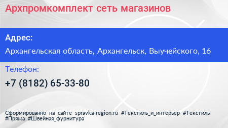 Архпромкомплект, сеть магазинов по адресу Архангельская область, Архангельск, Выучейского, 16 в дальнейшем Организация, размещена в следующих категориях: