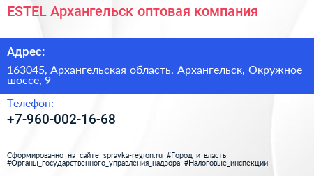 ESTEL Архангельск, оптовая компания по адресу 163045, Архангельская область, Архангельск, Окружное шоссе, 9 в дальнейшем Организация, размещена в следующих категориях: