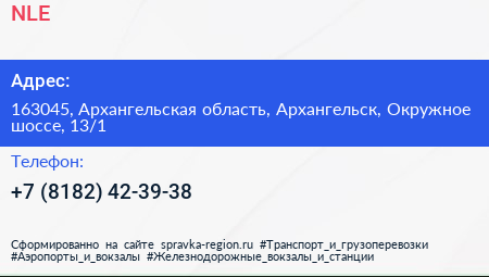 NLE по адресу 163045, Архангельская область, Архангельск, Окружное шоссе, 13/1 в дальнейшем Организация, размещена в следующих категориях: