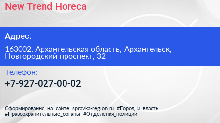 New Trend Horeca по адресу 163002, Архангельская область, Архангельск, Новгородский проспект, 32 в дальнейшем Организация, размещена в следующих категориях: