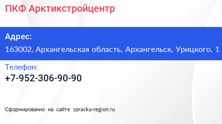 ПКФ Арктикстройцентр по адресу 163002, Архангельская область, Архангельск, Урицкого, 1 в дальнейшем Организация, размещена в следующих категориях: