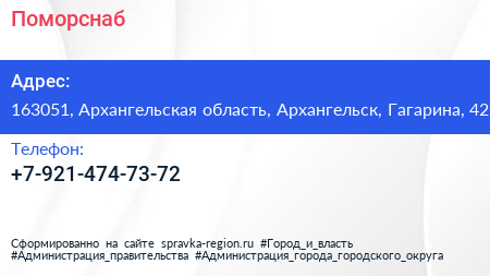 Поморснаб по адресу 163051, Архангельская область, Архангельск, Гагарина, 42 в дальнейшем Организация, размещена в следующих категориях: