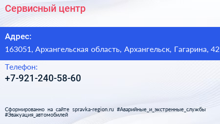 Сервисный центр по адресу 163051, Архангельская область, Архангельск, Гагарина, 42 в дальнейшем Организация, размещена в следующих категориях:
