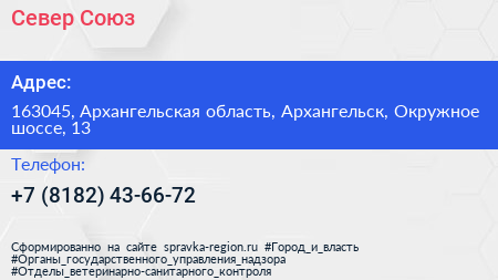 Север-Союз по адресу 163045, Архангельская область, Архангельск, Окружное шоссе, 13 в дальнейшем Организация, размещена в следующих категориях: