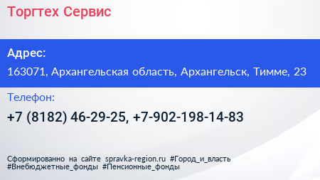 Торгтех-Сервис по адресу 163071, Архангельская область, Архангельск, Тимме, 23 в дальнейшем Организация, размещена в следующих категориях: