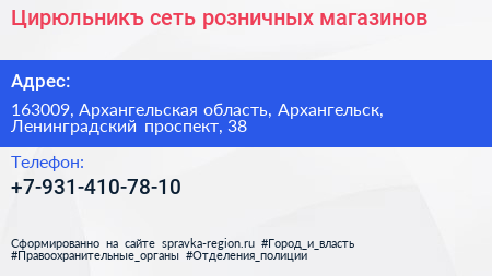 Цирюльникъ, сеть розничных магазинов по адресу 163009, Архангельская область, Архангельск, Ленинградский проспект, 38 в дальнейшем Организация, размещена в следующих категориях: