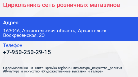 Цирюльникъ, сеть розничных магазинов по адресу 163046, Архангельская область, Архангельск, Воскресенская, 20 в дальнейшем Организация, размещена в следующих категориях: