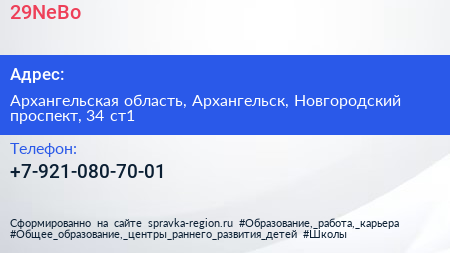 29NeBo по адресу Архангельская область, Архангельск, Новгородский проспект, 34 ст1 в дальнейшем Организация, размещена в следующих категориях: