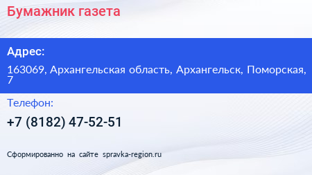 Бумажник, газета по адресу 163069, Архангельская область, Архангельск, Поморская, 7 в дальнейшем Организация, размещена в следующих категориях:
